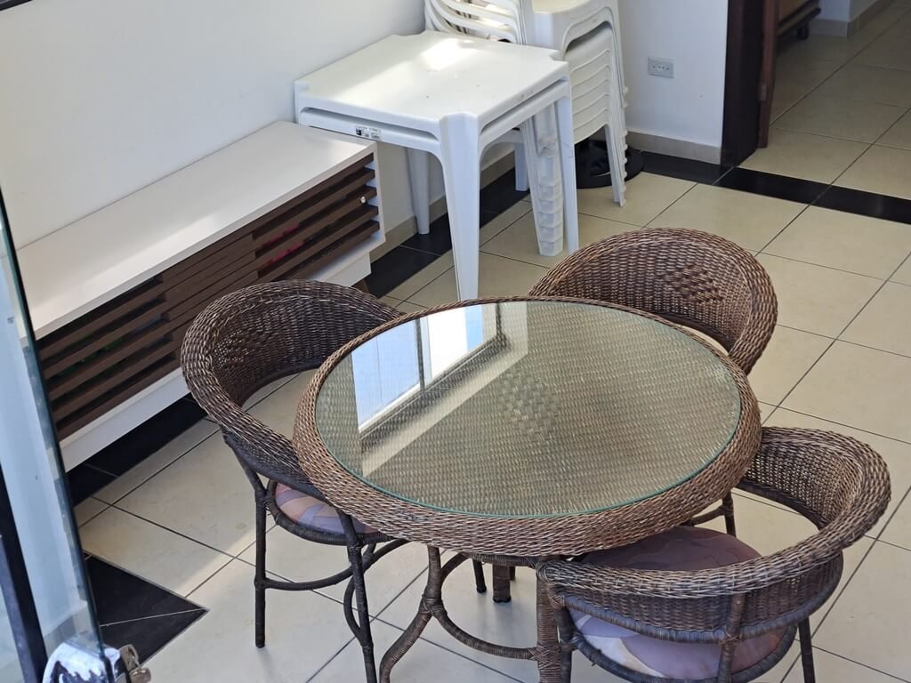 Na sala para 2 ambientes, bem iluminada, você pode relaxar enquanto desfruta da vista deslumbrante do mar.