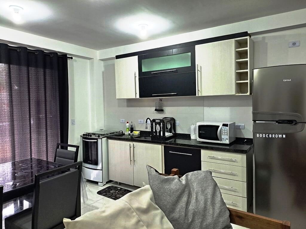 Cozinha bem equipada c/utensílios e eletrodomésticos, com máquina de lavar roupas, com wifi, com ventiladores de teto. Prédio com elevador.