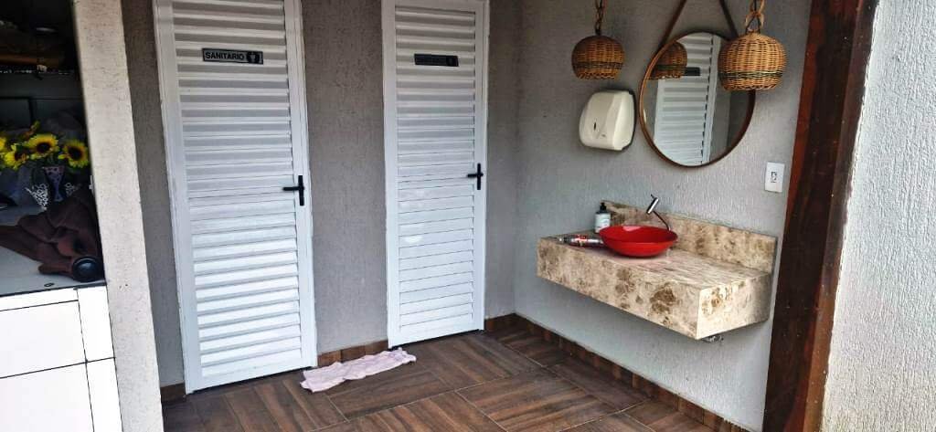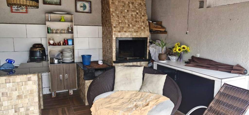 Para os amantes do churrasco, há também uma churrasqueira e uma bancada com fogão embutido,